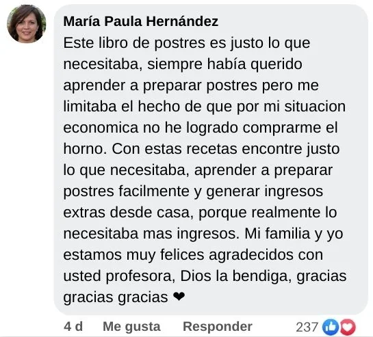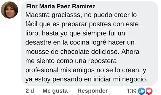 Puedes imprimir en cualquier impresora y los ingredientes son fáciles de conseguir, además dentro te entregamos 4 cursos de postres adicionales.